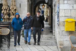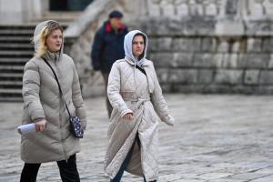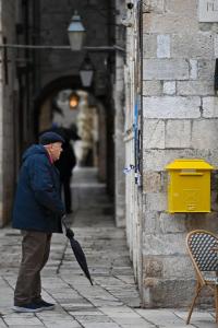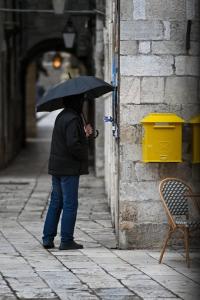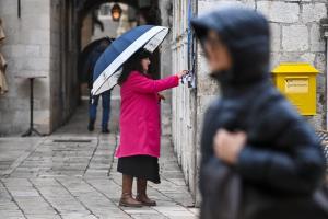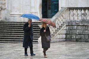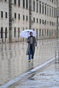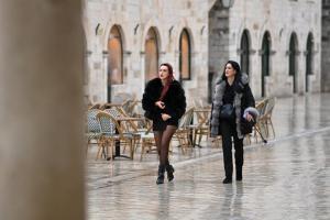 Dubrovnik, 25.01.2026 - Gradjani u setnji Stradunom u kisno nedjeljno poslijepodne