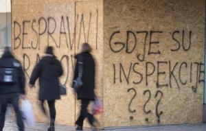 Preuzmi cijelu galerijuSplit, 27.01.2026 - Na zatvorenom i zapustenom objektu Prima Grad osvanuli su natpisi o bespravnoj...