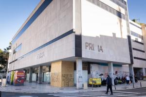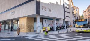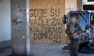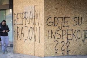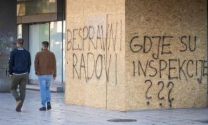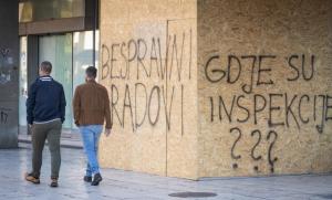 Split, 27.01.2026 - Na zatvorenom i zapustenom objektu Prima Grad osvanuli su natpisi o bespravnoj...
