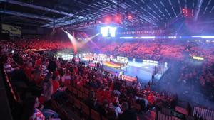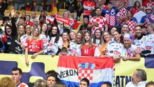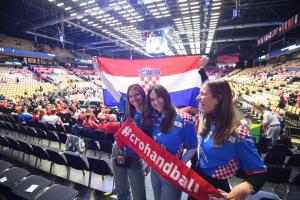 Herning, 30.01.2026 - Rukomet: Hrvatski navijaci na utakmici polufinala Europskog prvenstva,...
