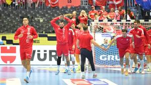 Herning, 30.01.2026 - Rukomet: Zagrijavanje igraca uoci utakmice polufinala Europskog prvenstva,...
