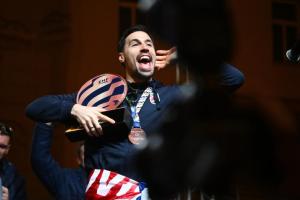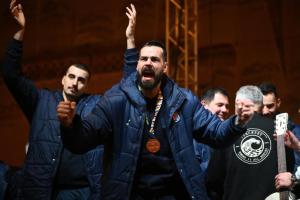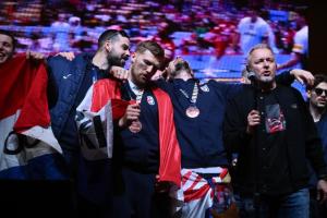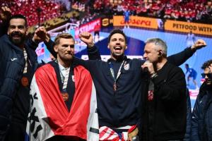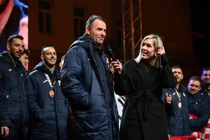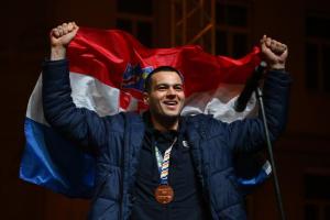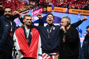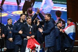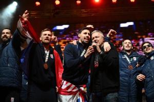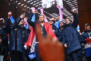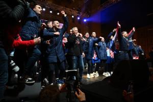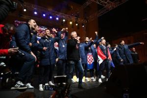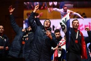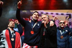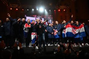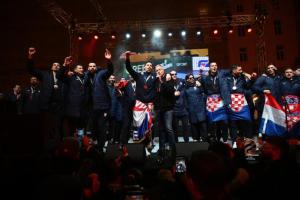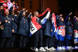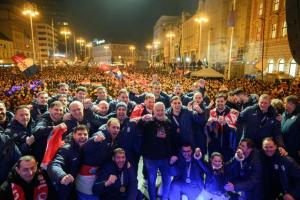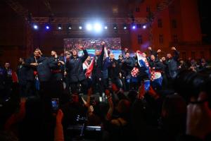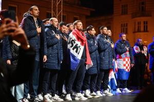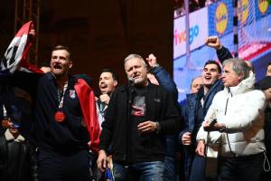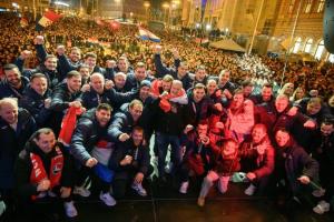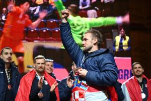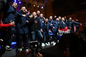 Zagreb, 02.02.2026 - Docek hrvatske rukometne reprezentacije na Trgu bana Jelacica