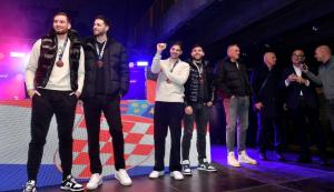 Rijeka, 03.02.2026 - Docek rukometasa iz Rijeke i okolice, osvajaca bronce na Europskom prvenstvu