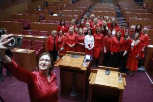 Zagreb, 06.02.2026 - Saborske zastupnice obiljezile Dan crvenih haljina