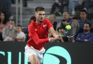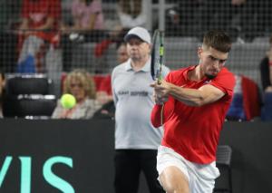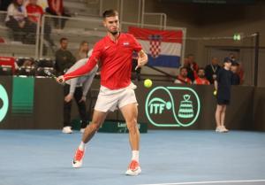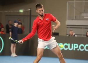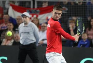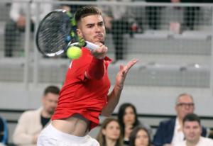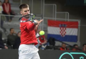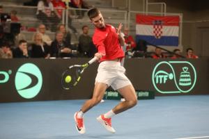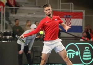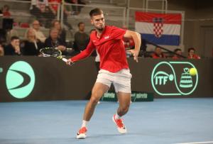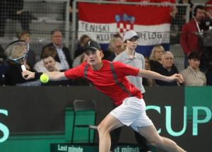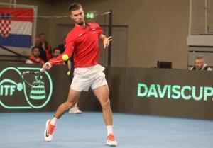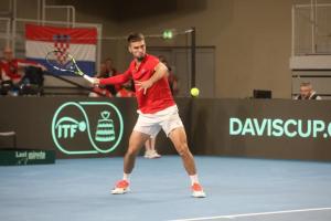 Varazdin, 07.02.2026 - Tenis: Prizmic - Moller, mec Davis Cup susreta Hrvatska - Danska