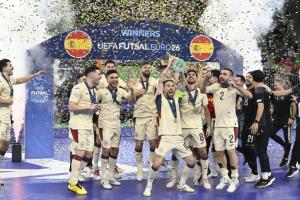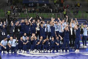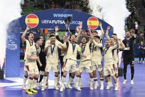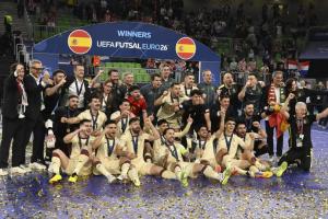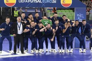 Ljubljana, 07.02.2026 - Dodjela medalja na Europskom prvenstvu u futsalu