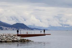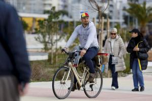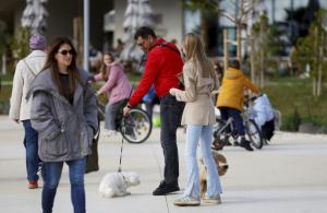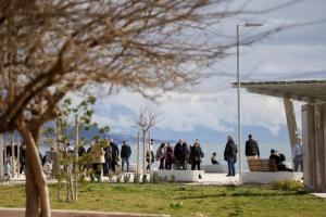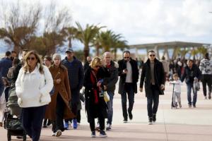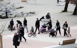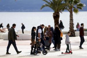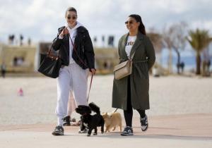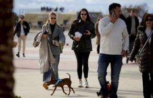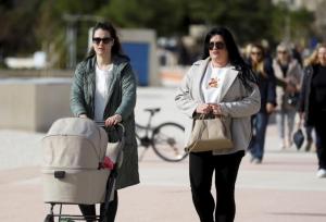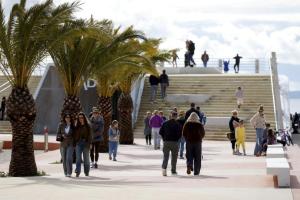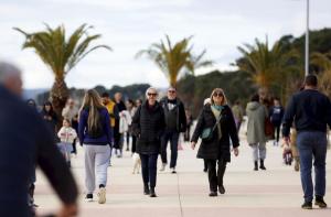Split, 08.02.2026 - Splicani uzivaju u suncanom danu na plazi Znjan