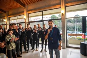 Dubrovnik, 10.02.2026 - Docek za Marka Kuraju broncanog malonogometasa s Europskog futsal prvenstva