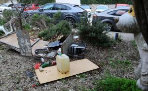 Split, 16.02.2026 - Odbaceni otpad ispred garaze u Sizgoricevoj ulici