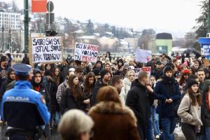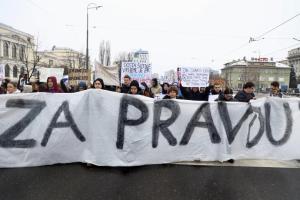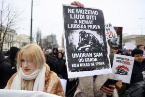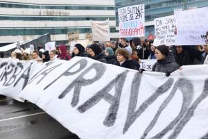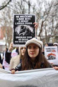 Sarajevo, 17.02.2026 - Novi prosvjed gradjana peti dan nakon iskliznuca tramvaja pri cemu je...