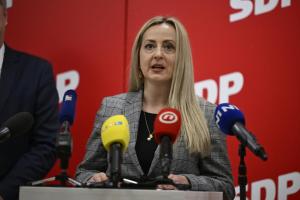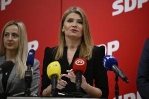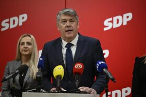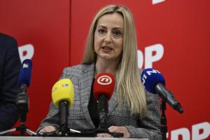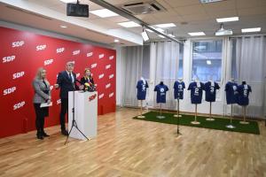 Zagreb, 19.02.2026 - Performans s dresovima na press konferenciji SDP-a povodom novoimenovanog...