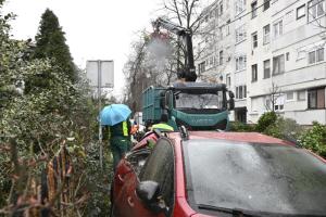 Zagreb, 20.02.2026 - Stablo iz dvorista obiteljske kuce palo na ulicu i izazvalo materijalnu...