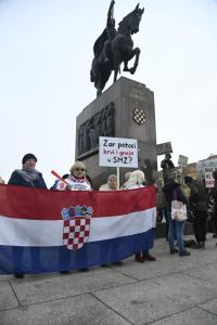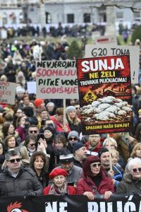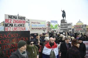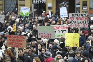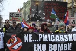 Zagreb, 21.02.2026 - Prosvjed protiv kompleksa industrijskih megafarmi i klaonica peradi u...