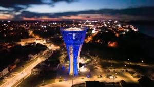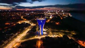 Preuzmi cijelu galerijuVukovar, 24.02.2026 - Vukovarski vodotoranj zasvijetlio je bojama ukrajinske zastave na obljetnicu...