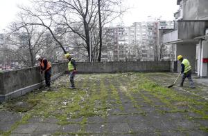 Zagreb, 02.03.2026 - Pocetak obnove platoa zgrade Kineski zid u naselju Travno