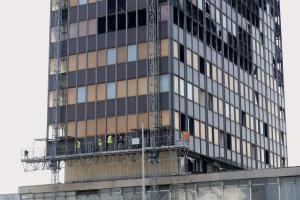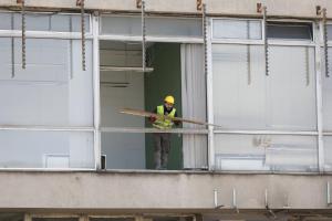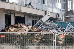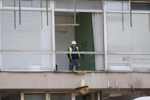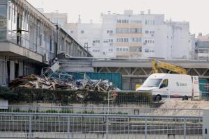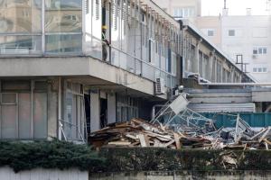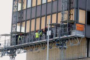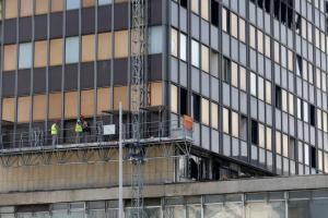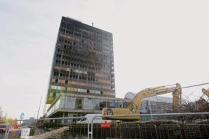 Zagreb, 04.03.2026 - Radovi na pripremi za rusenje nebodera Vjesnik