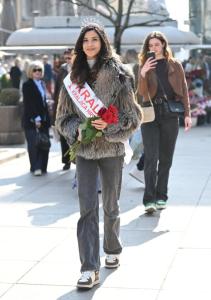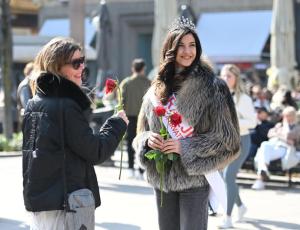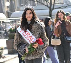 Zagreb, 07.03.2026 - Kraljica Hrvatske Lana Lourdes Rupic dijelila zenama crvene ruze u centru...