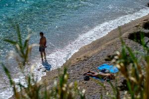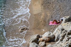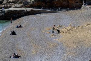 Dubrovnik, 10.03.2026 - Prvi kupaci uzivaju u suncanom proljetnom danu na plazi Banje