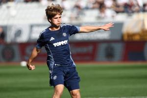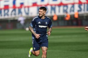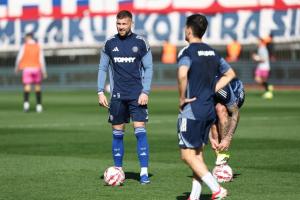 Split, 15.03.2026 - Nogomet: Zagrijavanje igraca prije pocetka utakmice Hajduk - Lokomotiva