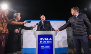 Ljubljana, 22.03.2026 - Janez Jansa u izbornom stozeru SDS-a na parlamentarnim izborima u Sloveniji