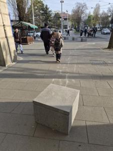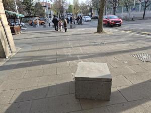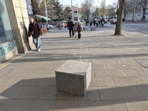 Zagreb, 25.03.2026 - Nepoznati vandali odvukli betonski blok na tramvajskoj stanici ispred...