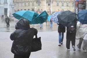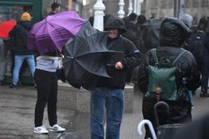 Zagreb, 26.03.2026 - Brojni kisobrani izgubili bitku s olujnim vjetrom u centru grada