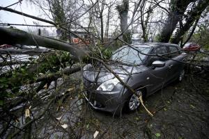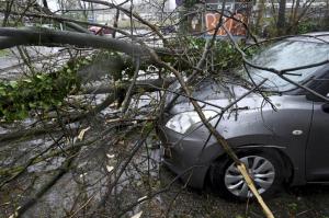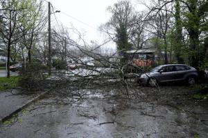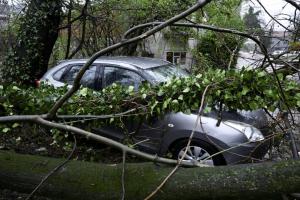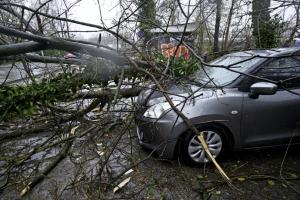 Zagreb, 27.03.2026 - Automobil zatocen pod srusenim stablom u Unskoj ulici