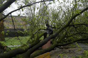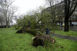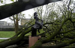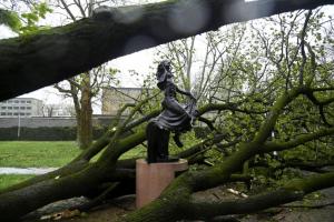Zagreb, 27.03.2026 - Stablo ostetilo skulpturu 5. studeni, poznatu i kao spomenik Romkinji...
