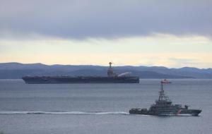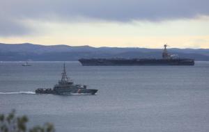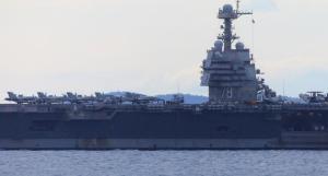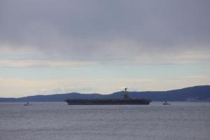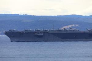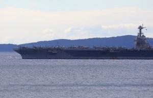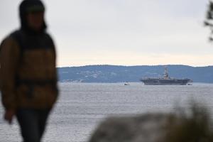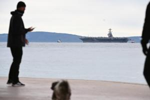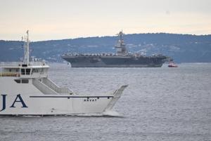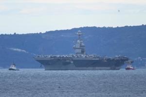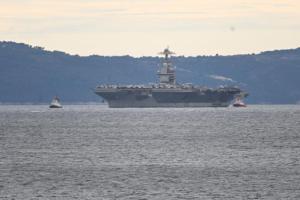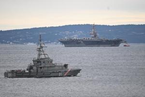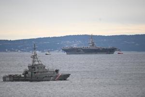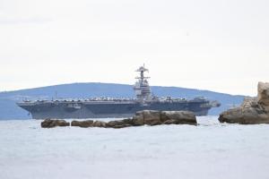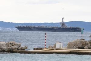 Split, 28.03.2026 - U splitsku luku uplovio je nosac zrakoplova americke ratne mornarice USS...