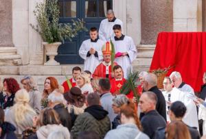 Split, 29.03.2026 - Blagoslov maslinovih i palminih grancica na Peristilu