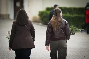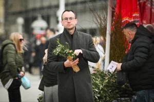 Zagreb, 29.03.2026 - Na blagdan Cvjetnice prolaznici nose blagoslovljene maslinove grancice
