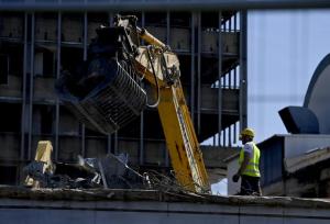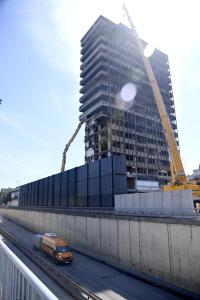 Zagreb, 09.04.2026 - Pocetak rusenja Vjesnikovog nebodera metodom grickanja