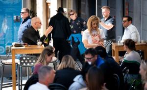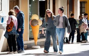 Sibenik, 11.04.2026 - Gradjani i turisti uzivaju u lijepom danu