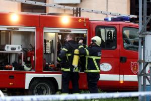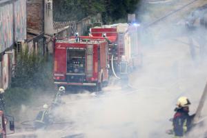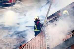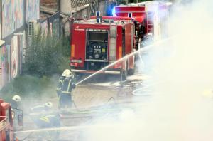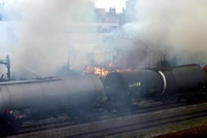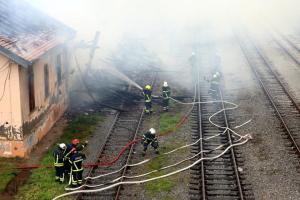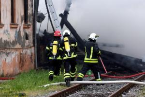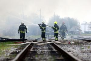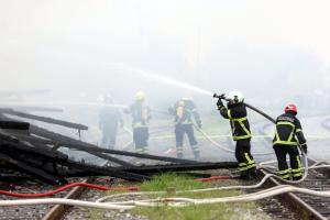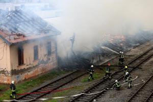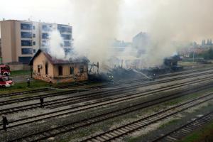 Osijek, 14.04.2026 - Pozar skladista Hrvatskih zeljeznica smjestenih uz prugu