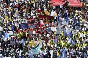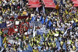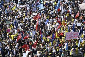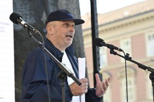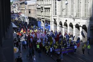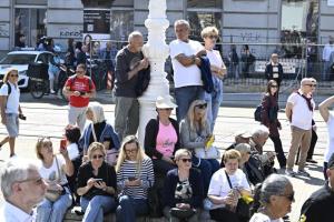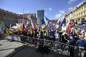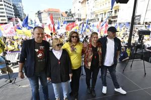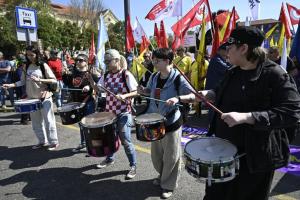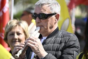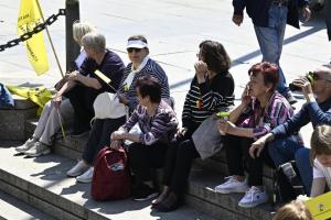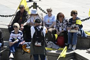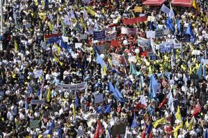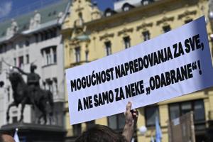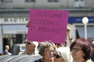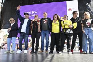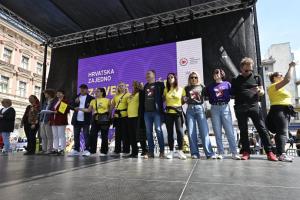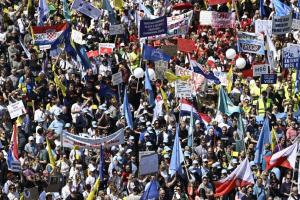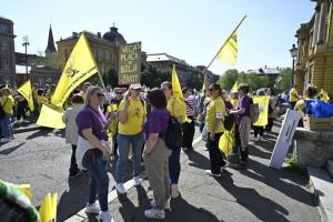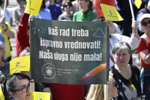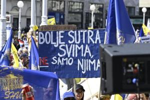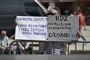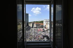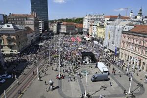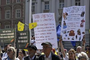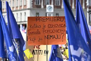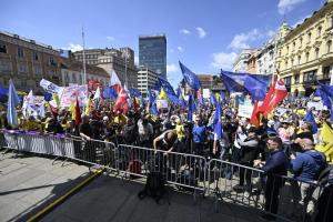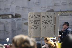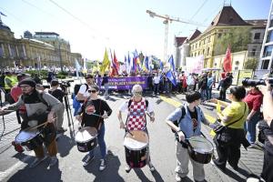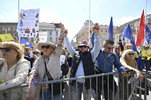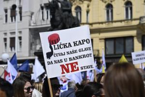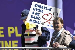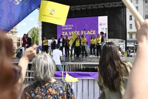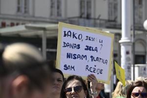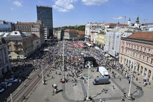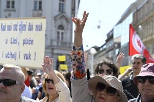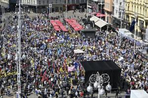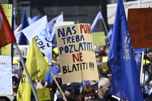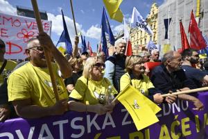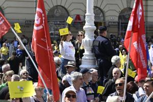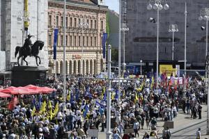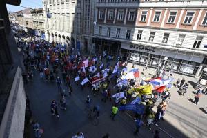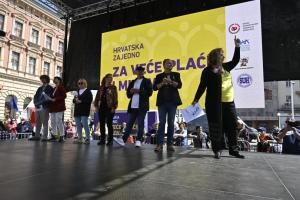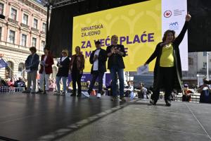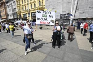 Zagreb, 18.4.2026 - Sindikalni prosvjed Hrvatska zajedno za vece place i mirovine na Trgu bana...