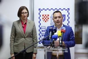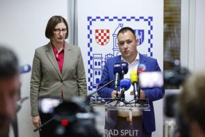 Split, 23.04.2026 - Marijana Puljak i Igor Skoko iz stranke Centar dali izjavu za medije