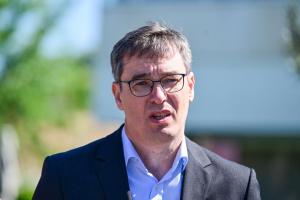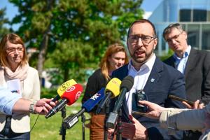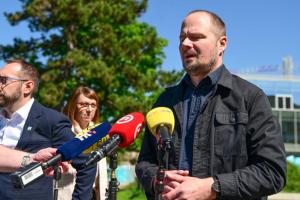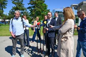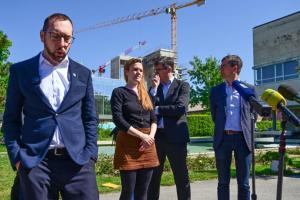 Zagreb, 24.04.2026 - Tomislav Tomasevic i Gergely Karacsony obisli gradiliste Gradske knjiznice...
