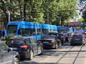 Zagreb, 27.04.2026 - Zastoj tramvaja na Savskoj ulici kod Tehnickog muzeja.
