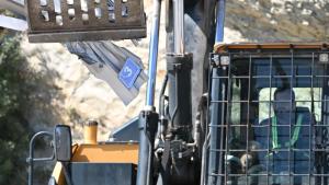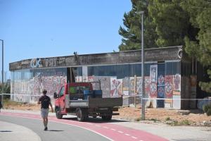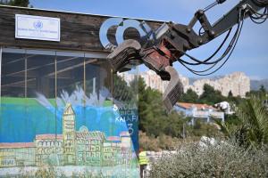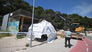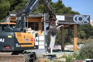 Split, 28.04.2026 - Tvrtka gradjevinskog inspektorata pocela je s rusenjem bespravnog ugostiteljskog...