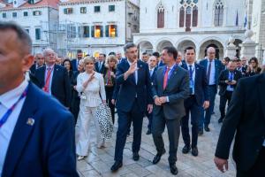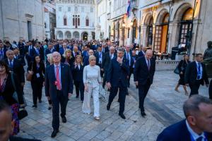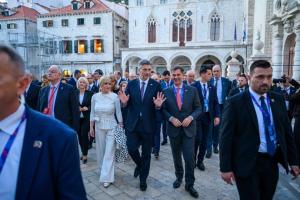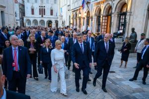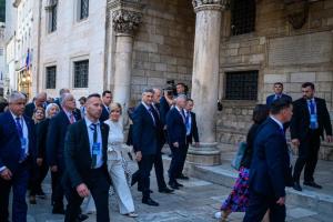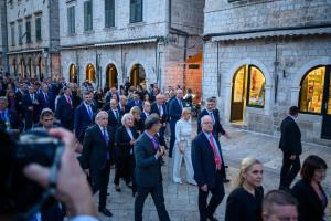 Dubrovnik, 28.04.2026 - Visoki uzvanici summita Inicijativa triju mora prosetali Stradunom