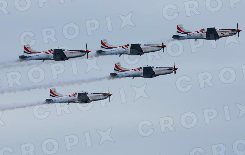 Akrobatska grupa Hrvatskog ratnog zrakoplovstva Krila Oluje u preletu iznad Splita